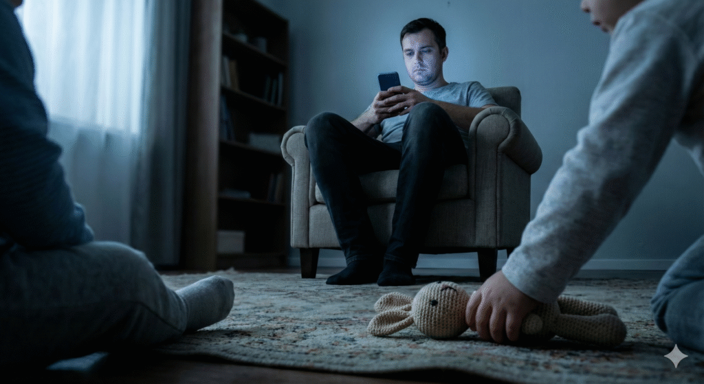 Postanowiłeś, że będziesz obecny. Że będziesz tatą z reklamy – uśmiechniętym, dostępnym 24/7. Wahadło odbija w drugą stronę. Ale mechanizm kompensacji działa jak broń obosieczna.